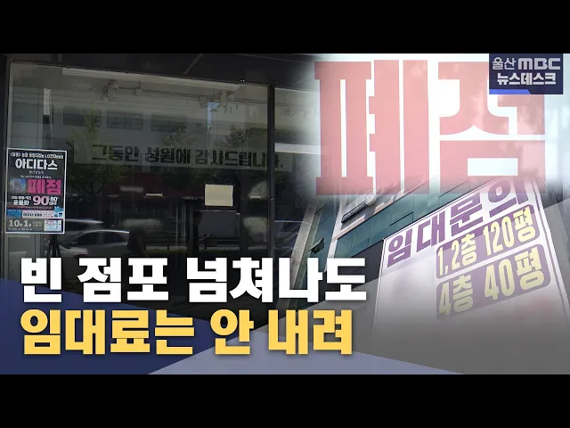 [앵커]유동인구가 많은 울산 중심가에도 빈 점포가 속출하고 있습니다. 경기 부진에 기존 임대인들이 폐업을 하고 나간 자리가 채워지지 않는 건데요. 이렇게 빈 점포가 넘쳐나고 있는데도 좀처럼 임대료는 내릴 줄을 모르고 있습니다. 왜 그런지 홍상순 기자가 알아봤습니다. [리포트]울산 삼산로에 인접한 점포에 임대 안...