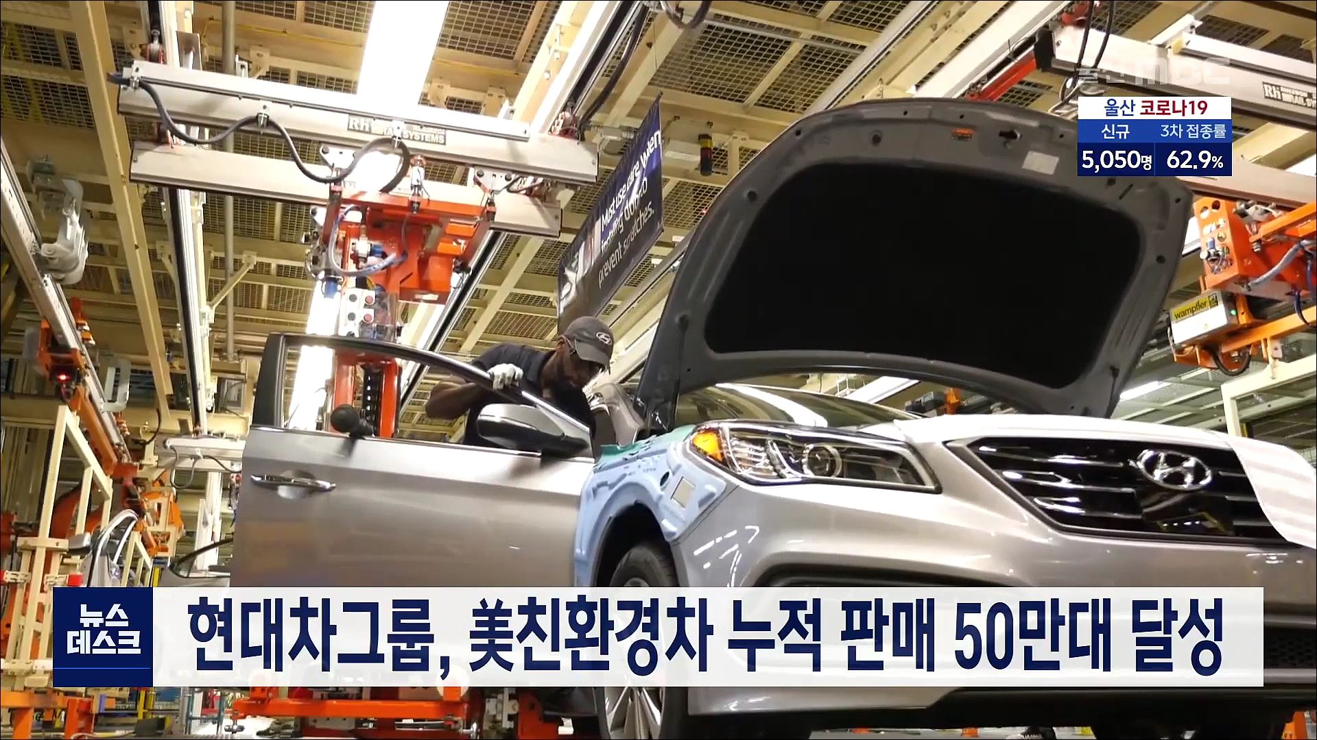 현대차그룹이 미국 자동차 시장에서 친환경차 누적 50만대 판매를 달성했습니다. 현대차그룹에 따르면 지난달 현대·기아차가 미국 시장에서 모두 50만 8천 여대의 친환경차를 팔아 11년만에 누적판매 50만대를 넘었습니다. 차종별로는 쏘나타 하이브리드가 14만7천 대로 가장 많이 팔린 것으로 나타났습니다.