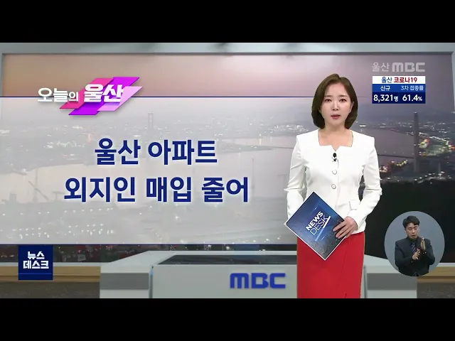 지난해 울산지역 아파트 외지인 매입비중이 전년 대비 줄어든 것으로 나타났습니다. 한국부동산원에 따르면 지난해 울산 아파트 매매거래량 1만7천여 건 가운데 외지인 거래는 3천 6백여 건으로 21.5%를 차지해 전년 42.7%에 크게 줄었습니다. 구·군별로는 동구가 26.8%로 가장 높았습니다. 지역 부동산업계는 동구의 경우 ...