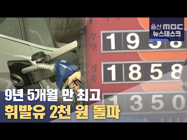 앵커 │ 러시아의 우크라이나 침공 여파로 국제유가가 오르면서 울산 주유소의 휘발유 평균 가격도 오늘(3/14) 리터당 2천 원을 넘어섰습니다. 2012년 10월 이후 9년 5개월 만인데, 경유 판매 가격도 리터당 1천939원으로 상승세가 가파릅니다. 이용주 기자. 리포트 │ 한국석유공사 오피넷 기준 최저가 주유소로 등록된 울주...