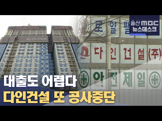앵커 │ 자금난으로 여러 차례 공사 중단과 재개를 반복했던 남구 번영로 다인로얄팰리스가 또 다시 공사를 중단했습니다. 금융권은 밀린 이자를 안내면 추가 대출이 어렵다는 입장이어서 울산 도심에 있는 큰 건물이 흉물로 전락하고 있습니다. 홍상순기잡니다.리포트 │ 울산 도심에 있는 남구 번영로 다인로얄팰리스. 상가...