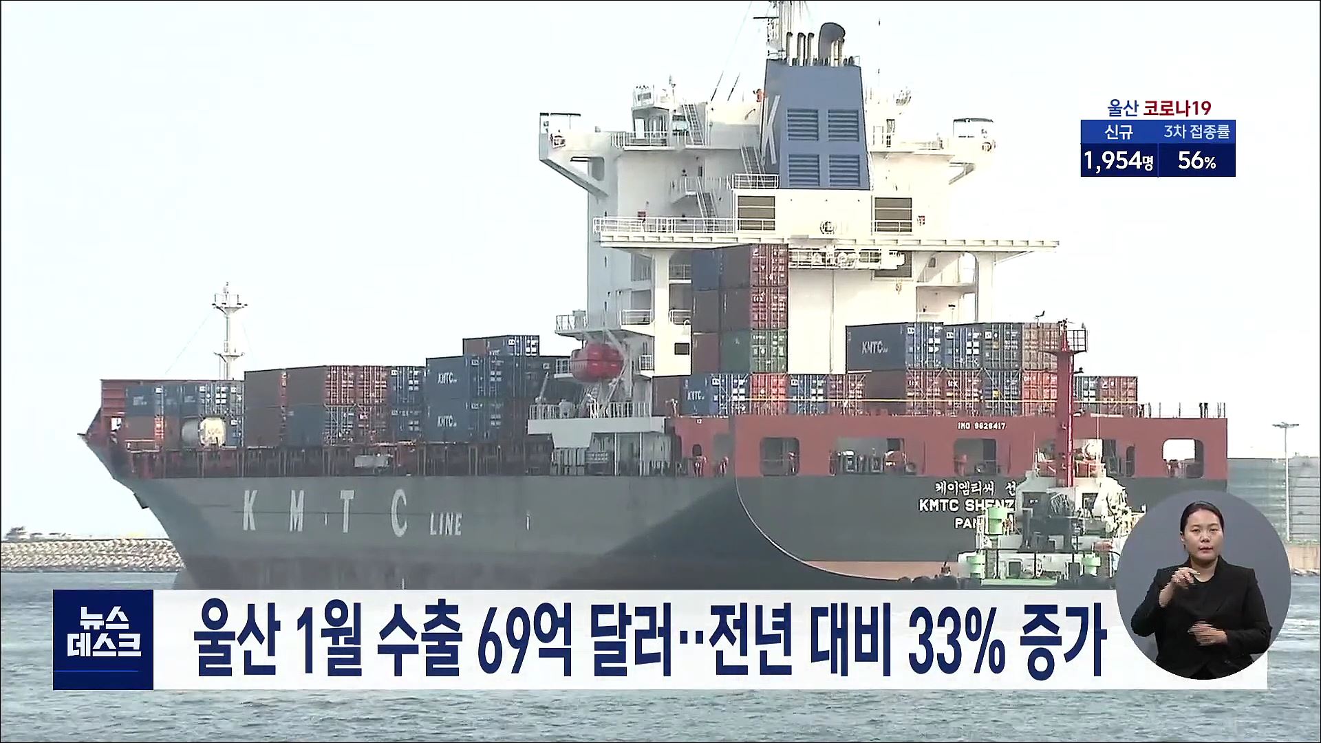 울산 1월 수출 69억 달러..전년 대비 33% 증가