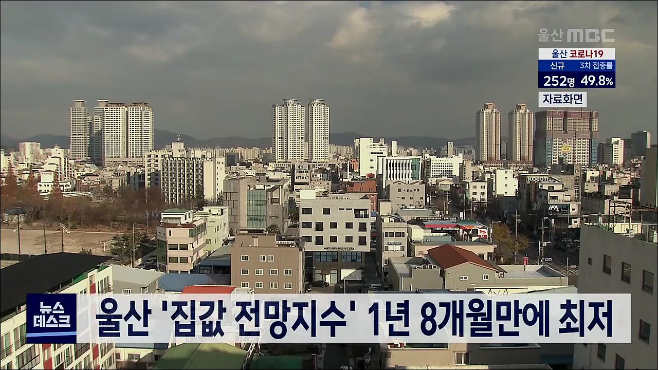 울산지역의 주택가격 전망지수가 2020년 5월이후 1년 8개월 만에 가장 낮은 것으로 나타났습니다. 한국은행 울산본부가 발표한 자료에 따르면 올해 1월 주택가격 전망지수는 109로 지난달보다 5p 하락해 넉달째 하락세를 보였습니다. 이같은 수치는 정부의 가계대출 규제와 기준금리 인상 등으로 매수심리가 얼어붙었기 때...