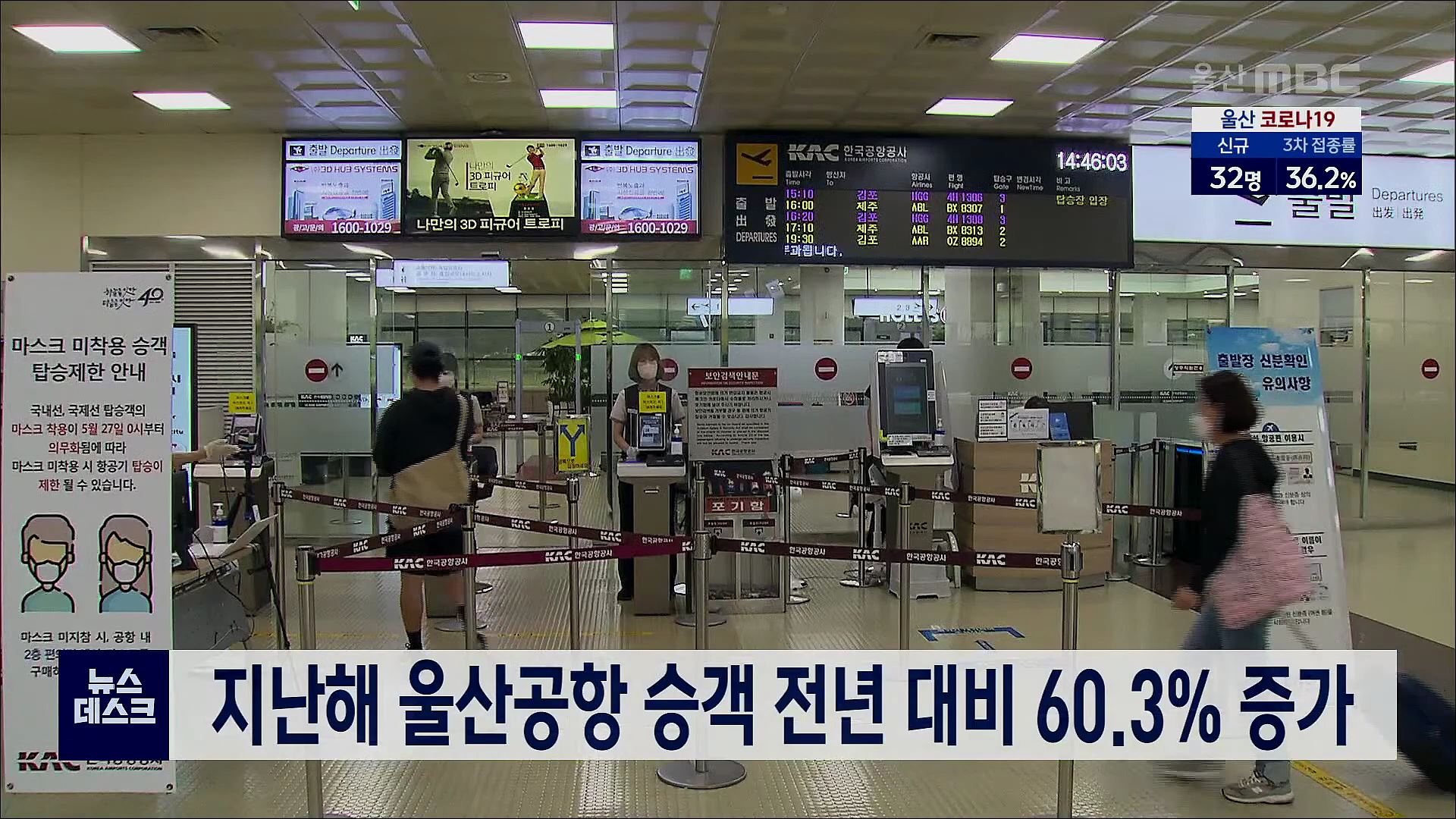 코로나19 장기화로 해외여행 대신 국내여행으로 발길을 돌린 여객이 증가하면서 울산공항 이용객도 크게 늘어난 것으로 나타났습니다. 한국공항공사에 따르면 지난해 울산공항을 이용한 승객은 88만8천500명 으로 지난 2020년 대비 60.3% 증가했습니다. 국내 항공사들도 국내선의 공급을 늘리면서 지난해 울산공항 국내선 ...