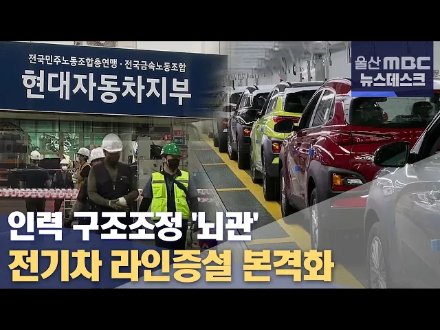 ◀ANC▶현대자동차가 연초부터 전기차 라인 증설에 나서고 있습니다. 또한 전기차 중심으로 조직 개편을 단행하는 등 내연기관과의 이별을 서두르고 있습니다. 노조는 이에 대해 회사 예측만큼 전기차 시장이 빨리 커지지 않을 거라며 생산 인력을 오히려 충원해야 한다고 맞서고 있습니다. 이상욱 기자. ◀END▶◀VCR▶...