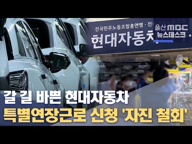 ◀ANC▶인기 차종 주문이 밀려 고용노동부에 특별연장근로를 신청했던 현대자동차가 신청을 자진 철회한 것으로 확인됐습니다.다음달 집행부 선거를 앞둔 각 사업부 노조 대표들이 연장근로 동의를 거부하면서 당분간 특별연장근로 추진이 힘들게 됐습니다.이상욱 기자. ◀END▶◀VCR▶차량용 반도체 수급난 속에서도 주...