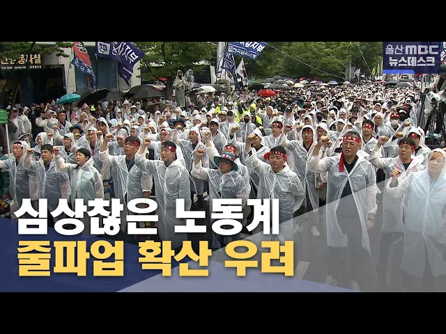 [앵 커] 울산 노동계가 잇따라 파업을 예고하면서 지역 사업장 곳곳에서 하계투쟁이 본격화되는 모양새를 보이고 있습니다. 오늘(7/16) 울산시청에서 열린 민주노총 총파업 대회에는 주최측 추산 천여명이 모였습니다. 이용주 기자. [리포트] 흰색 우비를 입고 머리에 붉은 띠를 둘러맨 노조원 1천여 명이 울산시청 남문에 ...