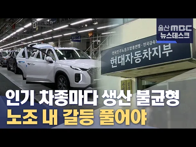 ◀ANC▶현대자동차가 시장 수요에 맞게 차량을 공급하지 못하는 생산 불균형에 시달리고 있습니다.울산공장은 생산 차종이 인기가 많아공급이 수요를 못 따라가고, 전주공장은 생산 물량을 확보하지 못해 직원들이 고용 불안에 시달리고 있습니다.그래서 울산의 생산 물량 일부를 전주로 옮기자는 제안이 이어졌지만 노조 ...