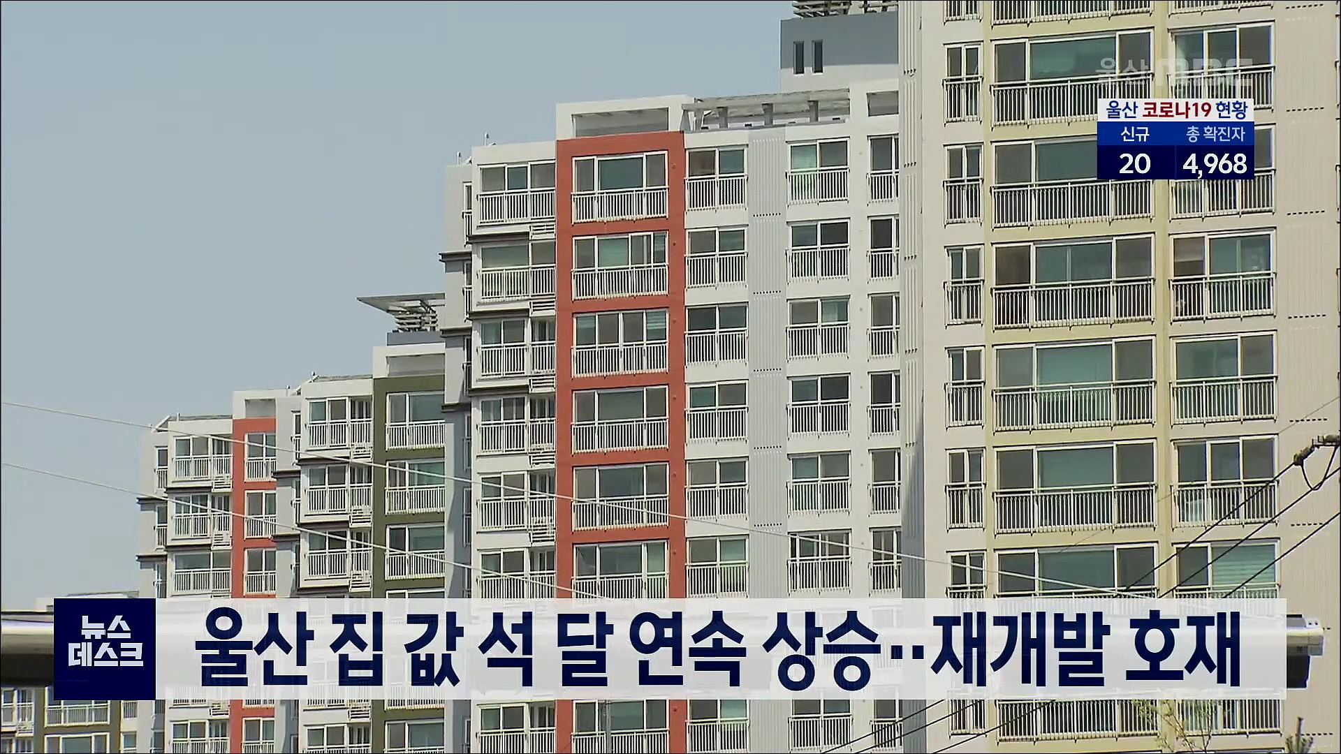 울산지역 재개발과 개발호재 소식 등이 잇달아 전해지면서 주택 매매가격이 석 달 연속 상승세를 이어가고 있습니다. 한국부동산원에 따르면 지난달 울산의 주택 매매가격은 0.77% 상승해 전달 0.72% 보다 상승폭을 키웠으며, 최근 6개월 중 가장 큰 상승률을 기록했습니다. 남구와 북구가 0.96%의 상승률로 가장 많이 올랐...