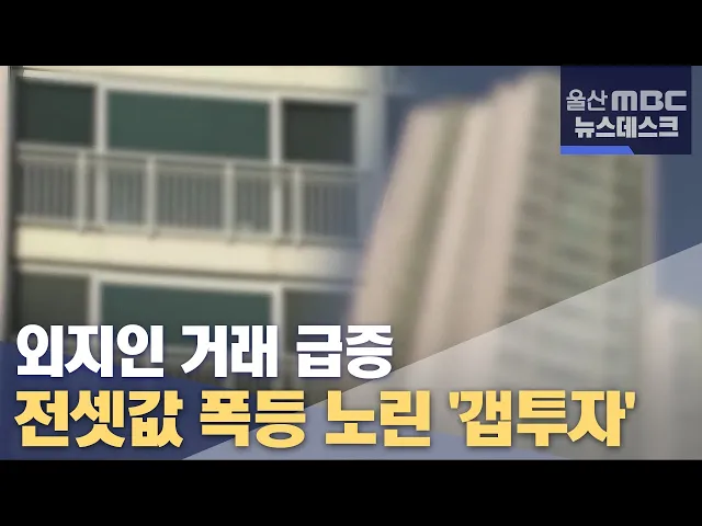 울산지역 전셋값이 폭등하면서 외지인 거래 비율도 급증하고 있습니다. 단기 시세 차익을 노린 외지인들의 이른바 갭투자 때문인 것으로 나타났습니다. 이로 인해 주택 실수요자들의 부담이 더욱 커질 것으로 우려됩니다. 이상욱 기자 매매와 전세값이 크게 오르고 있는 울산 남구의 한 아파트 단지입니다. 충남 보령시에 ...