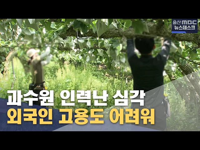 [앵커]일손이 부족한 농가 중에서도 과수농가의 어려움이 더 크다고 합니다. 계절노동자라 불리는 외국인 노동자도 현실에 맞지 않아 고용하기 어렵다고 하는데요. 이러다 과수원을 접어야 하는 것 아니냐느 하소연이 곳곳에서 쏟아지고 있습니다. 정인곤 기자 [리포트]나무에 매달려 이제 막 영글기 시작하는 배에 봉지를 ...
