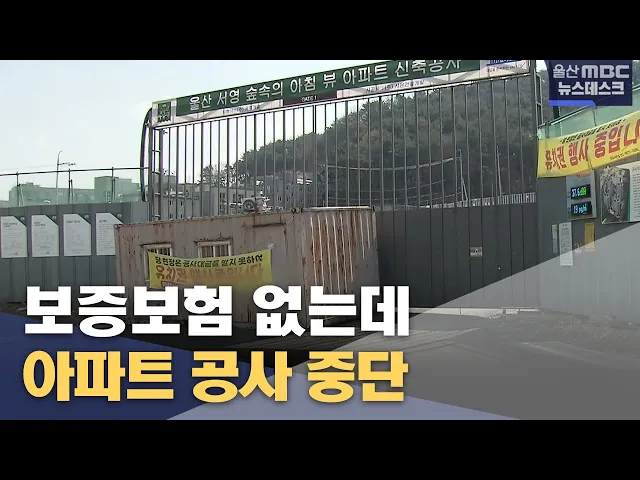 [ 앵 커 ]경남 거제에 본사를 둔 시온건설개발 부도 사태로 울산지역 공사현장도 5개월 째 멈춰 선 것으로 확인됐습니다. 이 현장은 아파트를 분양할 때 반드시 하도록 돼 있는 보증보험에도 가입하지 않은 채 임차인을 모집해 피해가 눈덩이처럼 불어날 것으로 우려됩니다. 이상욱 기자가 보도합니다. [ 리포트 ]울주군 웅...