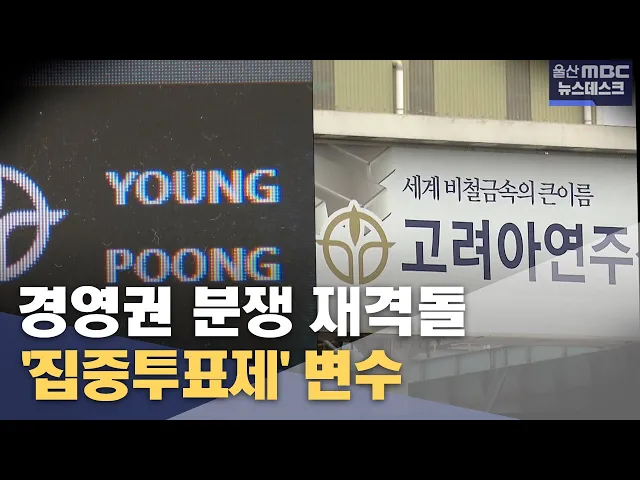 [앵커]고려아연 경영권 분쟁이 다시 시작됐습니다. 법원이 영풍의 고려아연 의결권 제한은 잘못된 것이라는 판결을 내렸기 때문인데요, 이달 말 열릴 주주총회에서 누가 이사회를 장악할 것인지가 최대 관심사로 떠오른 가운데 집중투표제가 큰 변수가 될 전망입니다. 홍상순 기잡니다. [리포트]법원이 영풍 측이 제기한 고...
