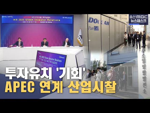 [앵커]경주 APEC 연계 행사로 우리나라를 찾은 해외 투자단이 울산을 방문해 수소산업 인프라와 투자 여건을 직접 확인했습니다. 울산시는 APEC 기간 한국을 찾는 세계 각국 대표와 투자자들에게 울산을 적극적으로 알리고 투자유치 기회를 만들어갈 계획입니다. 최지호 기자. [리포트]북구 율동에 건립된 수소연료전지열병...