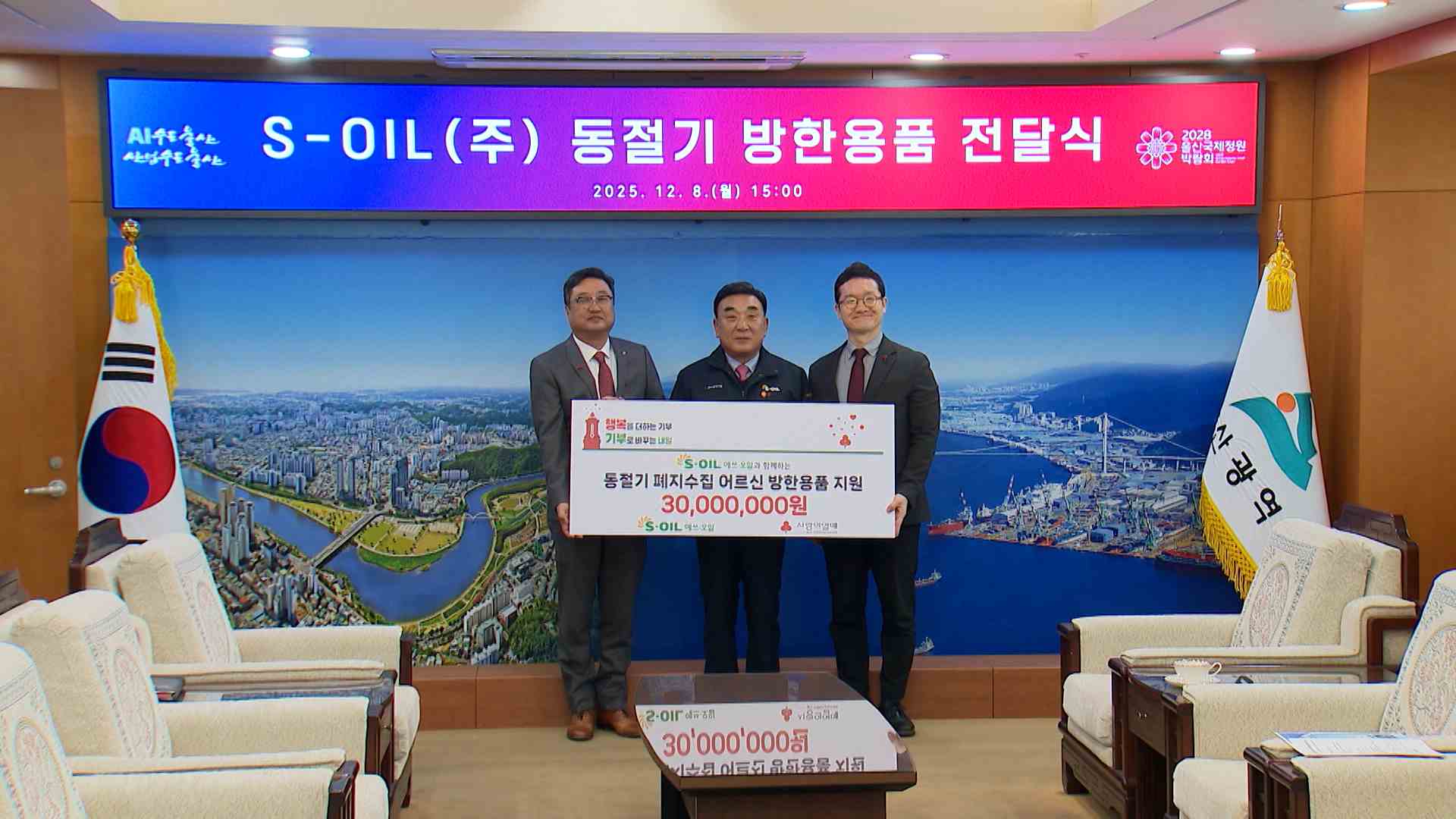 에쓰오일이 동절기를 앞두고 야외 활동이 많은 폐지 수집 노인들에게 방한용품을 지원하기로 했습니다.에쓰오일은 오늘(12/8) 울산시청에서 폐지 수집 노인 290여 명에게 지원할 경량 패딩과 방한 조끼, 넥워머, 방한 양말 등 방한용품 전달식을 가졌습니다.방한용품은 실제 현장에서 폐지를 수집하는 고령층의 저체온증 등...
