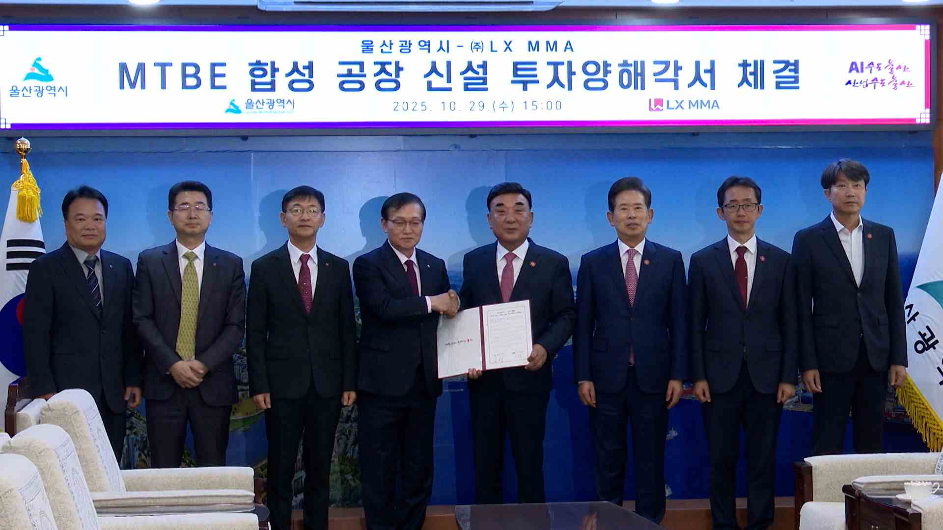 울산시와 LX MMA가 오늘(10/29) 울산시청에서 메틸부틸에테르 설비 투자 협약을 체결했습니다. LX MMA는 내년 6월까지 720억 원을 투자해 온산국가산업단지에 연간 15톤 규모의 메틸부틸에테르를 생산하는 공장을 완공하고 지역민을 우선 채용하기로 했습니다. 메틸부틸에테르는 플라스틱 소재 원료나 휘발유 첨가제로 사용...