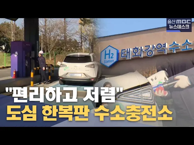 [앵 커] 울산의 교통 중심지인 태화강역에 수소충전소가 문을 열고 본격 운영에 들어갔습니다. 전용 수소 배관을 통한 대량 공급으로 충전 용량은 기우고 가격은 낮춰 수소자동차 운전자들의 불편이 크게 줄어들 것으로 기대됩니다. 최지호 기자. [리포트] 울산 도심 한복판인 태화강역에 수소충전소가 문을 열었습니다. 교...