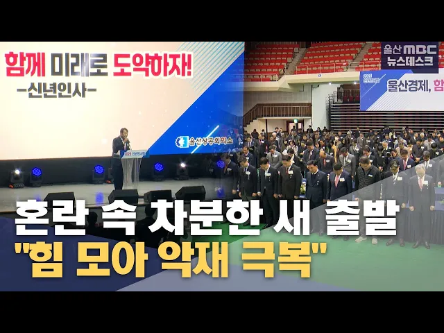 [앵 커 ] 울산지역 주요 인사들이 모두 모이는 신년인사회가 올해도 열렸는데요. 들뜬 마음으로 새로운 희망을 나눴던 예년과 달리 지난 연말부터 계속되는 혼란 속에 차분하게 진행됐습니다. 참석자들은 대내외 악재 속에서도 어려움을 함께 극복해 나갈 것을 다짐했습니다. 홍상순 기자가 보도합니다. [리포트] 울산상공...