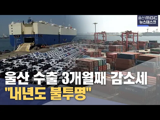 [앵커]울산 수출이 3개월 연속 감소세를 보이며 연간 900억 달러 목표 달성이 사실상 어려워졌습니다.내년 초 강력한 보호무역주의를 내세운 미국 트럼프 2기 행정부 출범을 앞두고 있어 자동차가 주력인 지역 수출 전선에도 빨간불이 켜졌습니다. 이상욱 기자가 보도합니다. [리포트]울산의 지난달 수출은 지난해 같은 기...