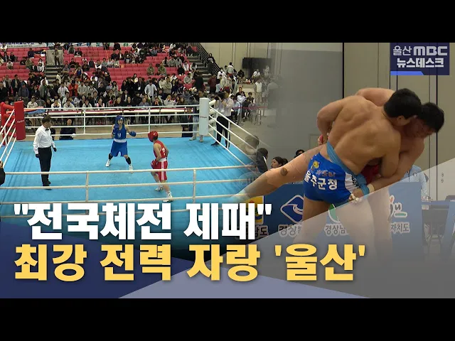 [앵커]전국체전에 출전한 울산 선수들 가운데에는 매년 전국체전을 휩쓸며 국내 최강 전력을 자랑하는 선수들이 있는데요. 전국체전 13연패와 4연패라는 말그대로 금자탑을 쌓은 주인공들이 탄생했습니다. 정인곤 기자 [리포트]황금빛 모래판이 펼쳐진 전국체전 씨름 경기장. 역사급에 출전한 울주군청 김무호 선수가 팽팽...