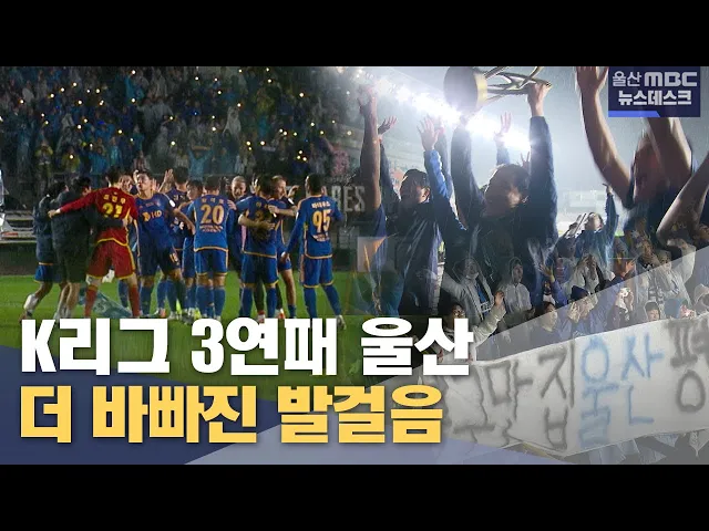 [앵 커 ] 울산이 창단 최초로 K리그 3연패에 성공했습니다. 시즌 도중 감독 교체라는 악재 속에서도 신임 김판곤 감독을 중심으로 왕좌를 지켜냈는데요. 일찌감치 리그 우승을 확정했지만 발걸음은 더 바빠지고 있습니다. 이용주 기자. [리포트 ] [잘 가세요~ 잘 가세요~] 울산종합운동장을 가득 채운 팬들의 함성 속에 울...