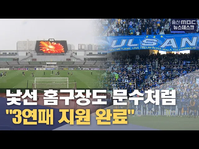[앵커]울산이 내일(11/1) 리그 2위 강원과 홈경기를 치릅니다.이번 경기를 승리하면 일찌감치 리그 3연패를 확정지을 수 있는데 변수는 종합운동장으로 변경된 홈구장입니다. 팬들은 낯선 경기장도 문수처럼 느낄 수 있도록 대대적인 응원전으로 3연패 지원 사격에 나설 계획입니다. 정인곤 기자 [리포트]동해안 더비를 완...