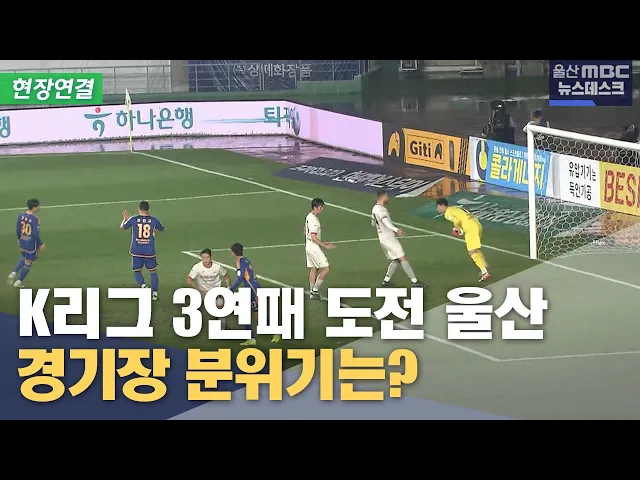 [앵커]창단 첫 리그 3연패에 도전하는 울산이 이 시간 현재 강원과 맞대결을 펼치고 있습니다.이번 경기만 승리하면 울산의 우승이 일찌감치 확정되는데요. 경기장에 나가있는 취재기자 연결해 보겠습니다. 정인곤 기자 [기자]네, 저는 지금 울산과 강원의 경기가 열리고 있는 울산 종합운동장에 나와있습니다. 울산은 전반...