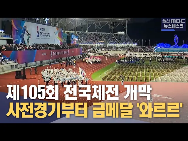 ◀ 앵 커 ▶ 제105회 전국체전이 오늘 개막해 일주일동안 경상남도에서 펼쳐집니다. 울산 선수단은 사전경기부터 금메달 16개를 수확하며 기분 좋은 출발을 알렸습니다. 정인곤 기자 ◀ 리포트 ▶ 반짝이는 은빛 피스트 위에서 울산 펜싱의 간판 박상영 선수가 전광석화 같은 찌르기 공격을 성공시킵니다. 리우올림픽에서 "할 ...
