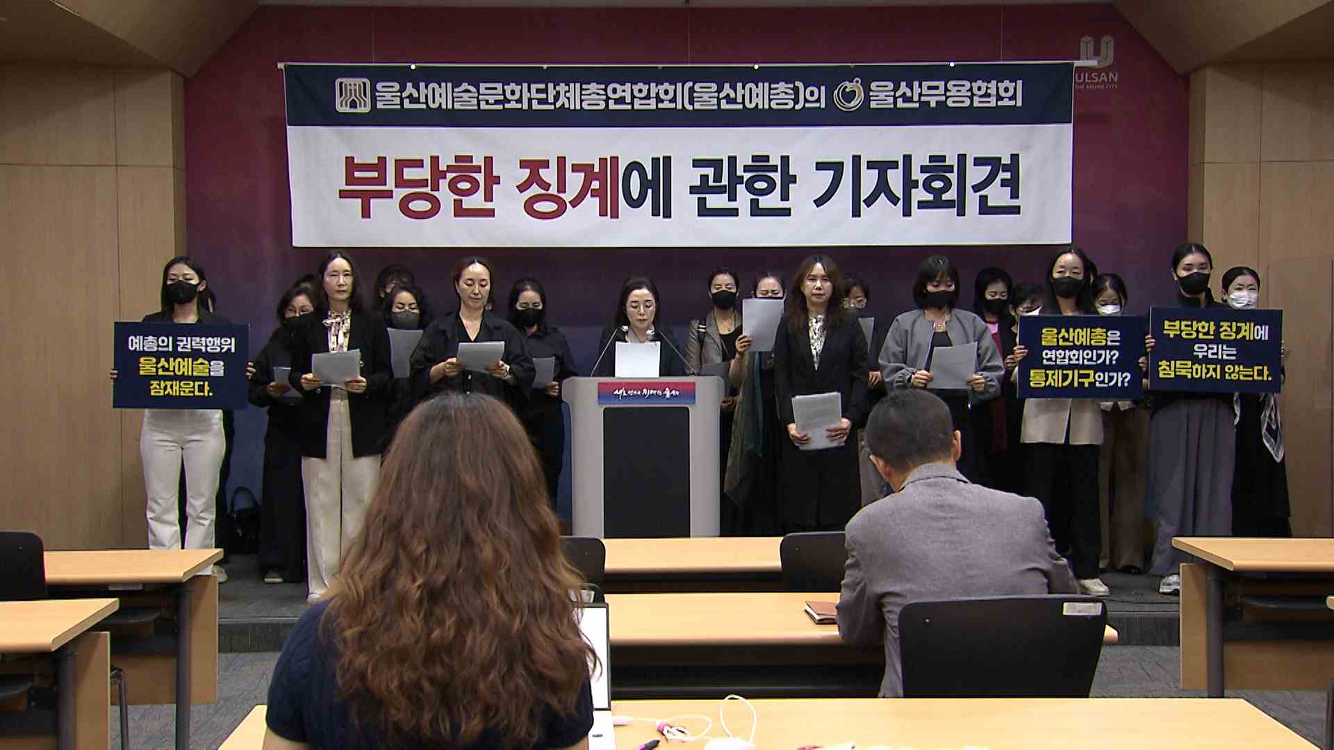 울산무용협회는 오늘(10/20) 기자회견을 열고 울산예총으로부터 받은 자격정지 징계는 부당하다고 주장했습니다. 무용협회는 절차를 무시하고 해외 공연에 참여한 개인의 일탈을 협회 전체로 확대해 징계하는 건 예총 회장의 직권 남용이라고 강조했습니다. 울산예총은 지난 7월 무용협회가 공연 출연과 관련한 갈등을 조장...