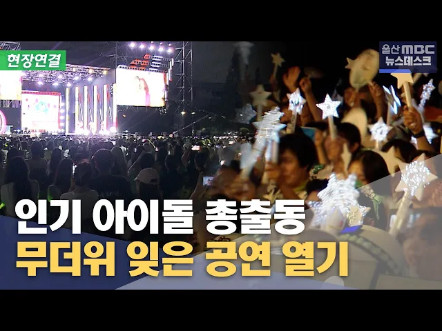 ◀ 앵 커 ▶ 울산MBC가 주최하는 울산서머페스티벌이 나흘째 이어지고 있습니다. 지금은 울산 종합운동장 보조경기장에서 열리는 공연에 아이돌 스타들이 총출동해 화려한 무대를 선보이고 있다는데요. 현장 연결합니다. 정인곤 기자, 관객들이 정말 많은데 현장 분위기는 어떤가요? ◀ st-up ▶ 네, 저는 지금 울산종합운동장 ...