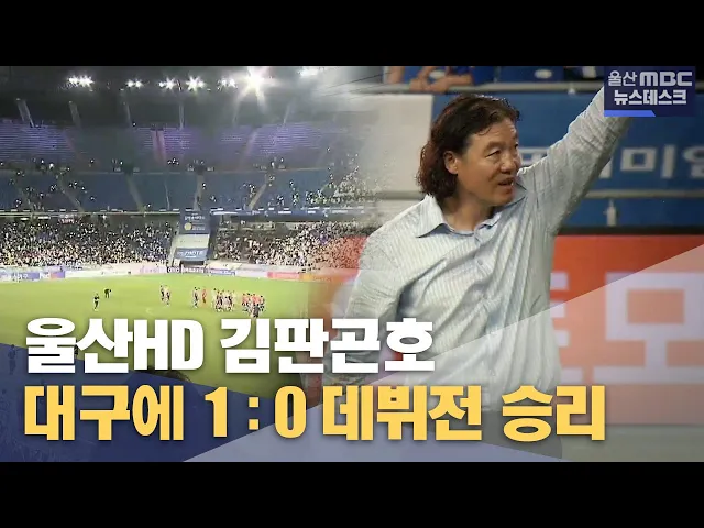 [앵커] 프로축구 울산HD의 제12대 사령탑으로 취임한 김판곤 감독이 첫 경기를 승리로 장식했습니다. 김 감독은 능동적인 공격, 공격적인 수비를 통해 울산HD의 K리그 3연패에 도전하겠다고 밝혔습니다. 이용주 기자. [리포트] 찌는듯한 무더위 속에서도 울산문수축구장을 찾아온 1만7천명의 축구팬들. 울산HD의 지휘봉을 ...