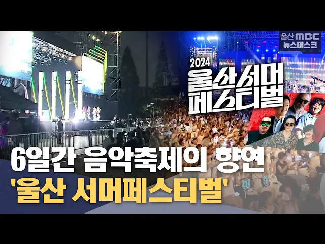 [ 앵 커 ] 울산을 대표하는 여름음악축제 울산 서머페스티벌이 오늘(8/9) 개막해 엿새 동안 릴레이 콘서트를 펼칩니다. 올해로 22회째를 맞은 페스티벌에는 트로트에서 힙합까지 남녀노소 누구나 인기 가수들이 총 출동해 화려한 무대를 선사할 예정입니다. 섬페 미리보기, 이다은 기자입니다. [ 리포트 ] 2024 울산서머페...