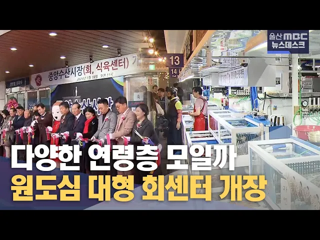 [ 앵 커 ]심에 대형 회센터 유치에 나선지 3년 만에 결실을 맺었습니다. 이번 회센터 개장으로 젊은층이 주로 찾는 원도심이 다양한 연령층이 즐길 수 있는 장소로 탈바꿈할지 기대를 모으고 있습니다. 정인곤 기자[리포트]울산 성남동 신중앙시장 건물 1층. 활어 판매점과 조개구이점, 초장집 등 24개 점포가 들어섰습니다...