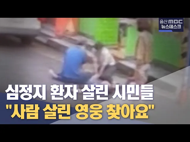 [앵커]60대 남성이 심정지로 갑자기 쓰러지자 시민 4명이 함께 신속한 119신고와 심폐소생술을 하며 살려냈습니다. 이들의 적극적인 대처로 소중한 생명을 살릴 수 있었는데, 이들 중 1명의 신분이 밝혀지지 않아 소방당국이 수소문 하고 있습니다. 이다은 기자. [리포트]울산 동구의 한 이면도로.길을 건너던 60대 남성이...