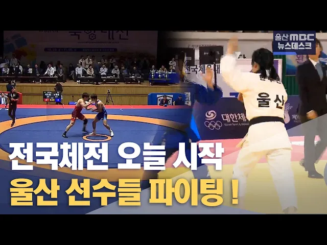 [앵커]지난해 울산에 이어 올해 제 104회 전국체전이 전라남도에서 오늘부터 개막했습니다.울산 선수단은 대회 첫날부터 금메달 1개를 포함해 7개의 값진 메달을 획득했습니다.정인곤 기자[리포트]제 104회 전국체전 첫날에 돌입한 전라남도 순천.첫번째 금메달의 주인공은 여자 대학부 48kg 이하 유도 경기에 출전한 한수...