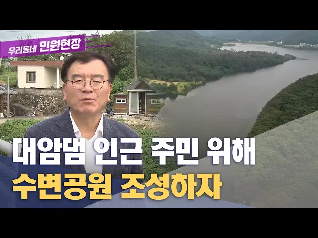 [앵커] 지역 주민들의 생활 불편과 민원을 보다 책임감 있게 처리하기 위해 시·구·군의원들과 함께 해결책을 찾아보는 우리동네 민원현장입니다. 울주군 대암댐 주변에 사는 주민들은 댐 때문에 큰 불편을 겪고 있지만 아무런 보상을 받지 못하고 있습니다. 이에 수변공원을 조성해서 여가도 즐기고 관광자원으로 활용하자...
