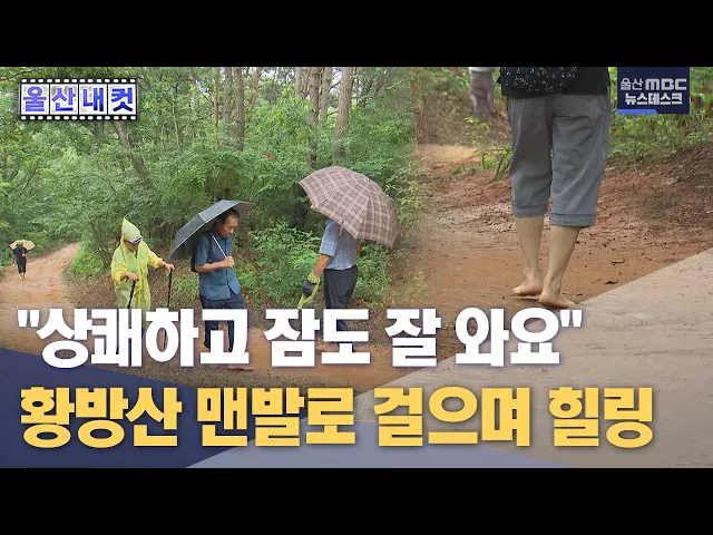 [앵커] 울산의 이색 장소를 소개하는 울산내컷. 맨발로 황톳길을 걸으면서 건강을 챙길 수 있는 황방산을 소개합니다. 장마철인데도 맨발걷기의 효능이 알려지면서 방문객이 꾸준히 늘고 있다고 합니다. 성예진 리포터가 다녀왔습니다. [리포트] 신발을 벗어놓고 맨발로 흙을 밟는 사람들. 이색 풍경이 펼쳐지는 이곳은, 중...