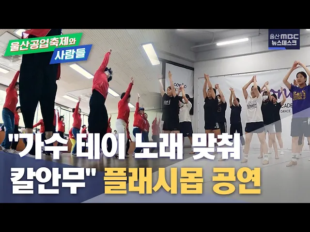 [앵커] 울산공업축제 첫 날, 퍼레이드 동선 중 하나인 울산 시청 앞에서 플래시몹 공연이 펼쳐집니다. 다양한 연령대의 울산 시민들이 플래시몹에 참여하기 위해 각 팀별로 안무 연습에 한창인데요. 울산공업축제를 준비하는 사람들, 성예진 리포터가 만났습니다. [리포트]힘찬 동작과 생기 가득한 웃음. 울산공업축제 첫날...