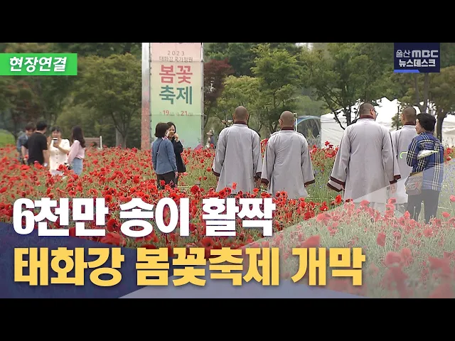 [앵커] 태화강 봄꽃축제가 막을 올렸습니다. 오늘 울산MBC뉴스데스크는 축제가 열리고 있는 태화강 국가정원에서 진행됩니다. 이번 축제에는 봄꽃 뿐만 아니라 다채로운 행사도 준비돼 있다고 합니다. 축제 현장을 연결해 보겠습니다. 정인곤 기자, 지금 현장 분위기는 어떤가요? [기자] 네, 저는 지금 봄꽃 축제가 열리고 ...