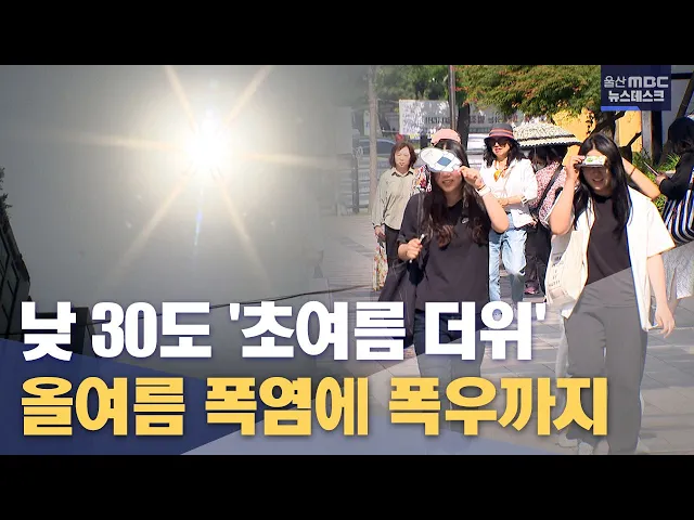 [앵커] 전국이 한여름같은 무더운 날씨를 보인 가운데 울산도 곳에 따라 낮기온이 30도가 넘었습니다. 기후 전문가들은 올여름은 무더위에 '슈퍼 엘리뇨' 현상으로 인해 폭우까지 잦을 것으로 경고했습니다. 정인곤 기자입니다.[리포트] 도심 한복판 도로에 아지랑이가 피어오릅니다. 강렬한 햇볕을 피해보기 위해 사람들은...