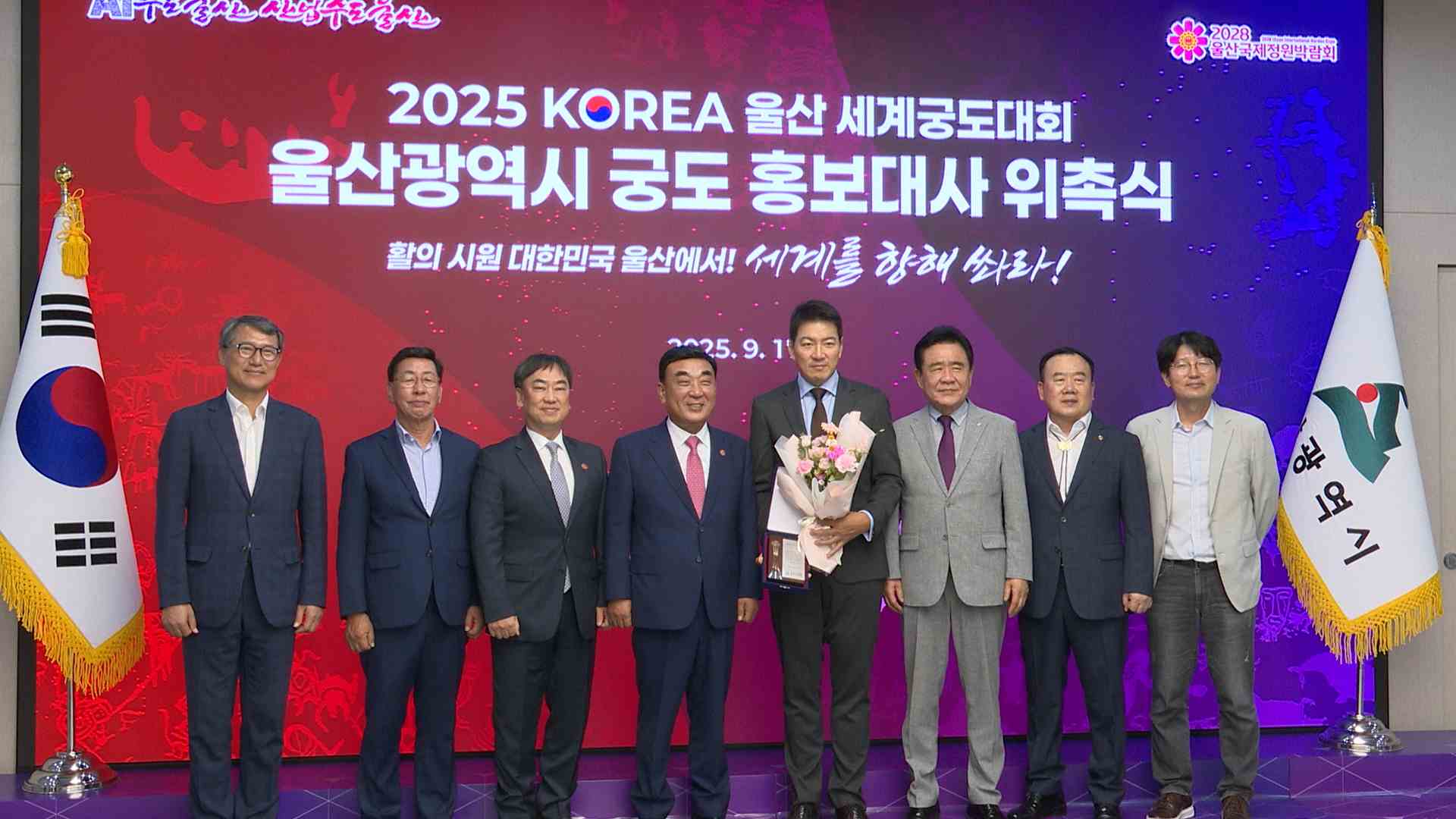 울산시가 MBC드라마 주몽의 주연 배우 송일국 씨를 궁도 홍보대사로 위촉했습니다. 울산시는 오늘(9/17) 위촉식을 열고 송 씨에게 울산이 개최하는 세계궁도대회를 비롯해 전통 무예를 널리 알리는 데 힘써 줄 것을 당부했습니다. 궁도대회는 오는 10월 31일부터 닷새 동안 35개 나라에서 600여 명이 참가하며, 145m에서 3...