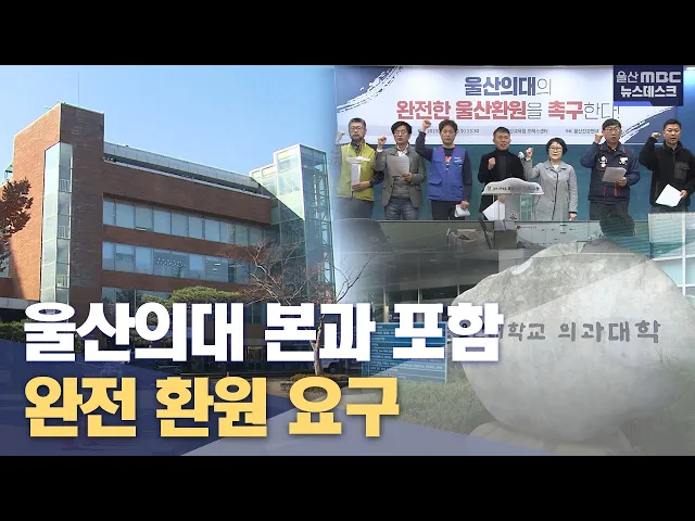 [앵커] 울산대 의대가 오는 2025년 울산 동구로 이전할 계획인데요, 시민단체는 완전한 지역 환원이 필요하다고 주장했습니다. 본과 3,4학년뿐만 아니라 의과대학원도 울산에서 교육을 받아야 한다는 건데, 울산대는 이 부분에 대해서는 명확한 입장을 내놓지 않고 있습니다. 이용주 기자입니다. [리포트]교육부의 '의과대...