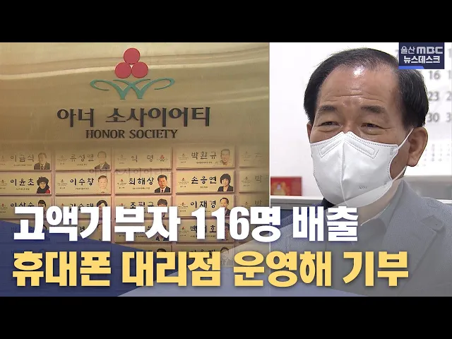 [앵커]울산MBC는 연말을 맞아 이웃 사랑을 실천하는 시민들을 소개하고 있습니다. 이번은 마지막 순서입니다. 울산에서 기부 문화가 정착되면서 110명이 넘는 고액 기부자가 아너 소사이어티 회원으로 이름을 올렸습니다. 윤수미 리포터가 전해드립니다. [리포트]휴대폰 판매 대리점을 운영하는 이강수 씨. 1994년부터 지금...