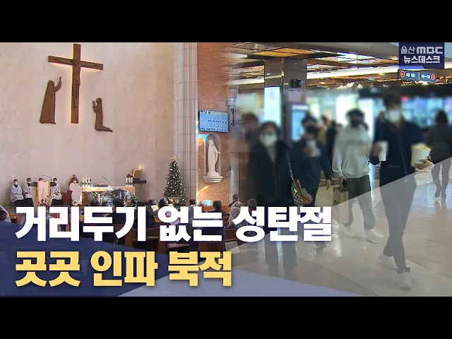 [앵커] 성탄절을 맞아 울산의 성당과 교회마다 미사와 예배를 열고 아기 예수의 탄생을 축하했습니다. 영화관과 쇼핑몰에는 추운 날씨를 피해 나들이를 나온 시민들의 발길이 이어졌습니다. 이용주 기자입니다. [리포트]가난한 목동들이 찾아간 마굿간 안, 구세주 예수가 말구유에 누워 있습니다. 울산의 성당과 교회마다 ...
