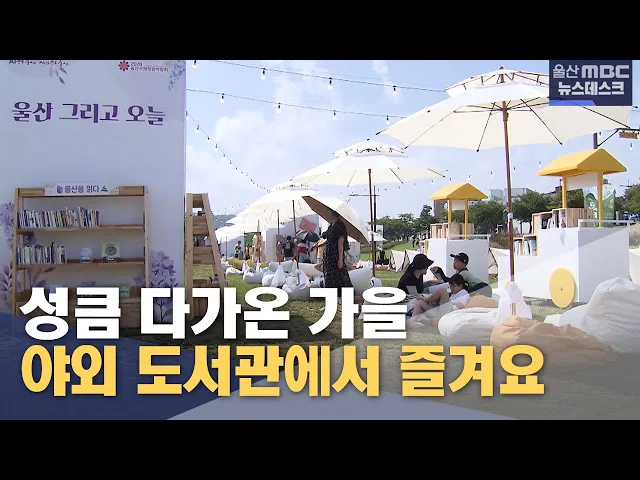 [앵커]유난히 길게 느껴졌던 여름이 물러가고 선선한 바람이 부는 가을이 성큼 다가왔습니다. 태화강 국가정원에 마련된 야외 도서관은 가을을 만끽하며 책을 읽는 사람들로 북적였는데요. 울산지역은 주중에 한두 차례 비가 내린 뒤 완연한 가을 날씨가 이어질 전망입니다. 최지호 기자. [리포트]태화강 국가정원을 배경으...