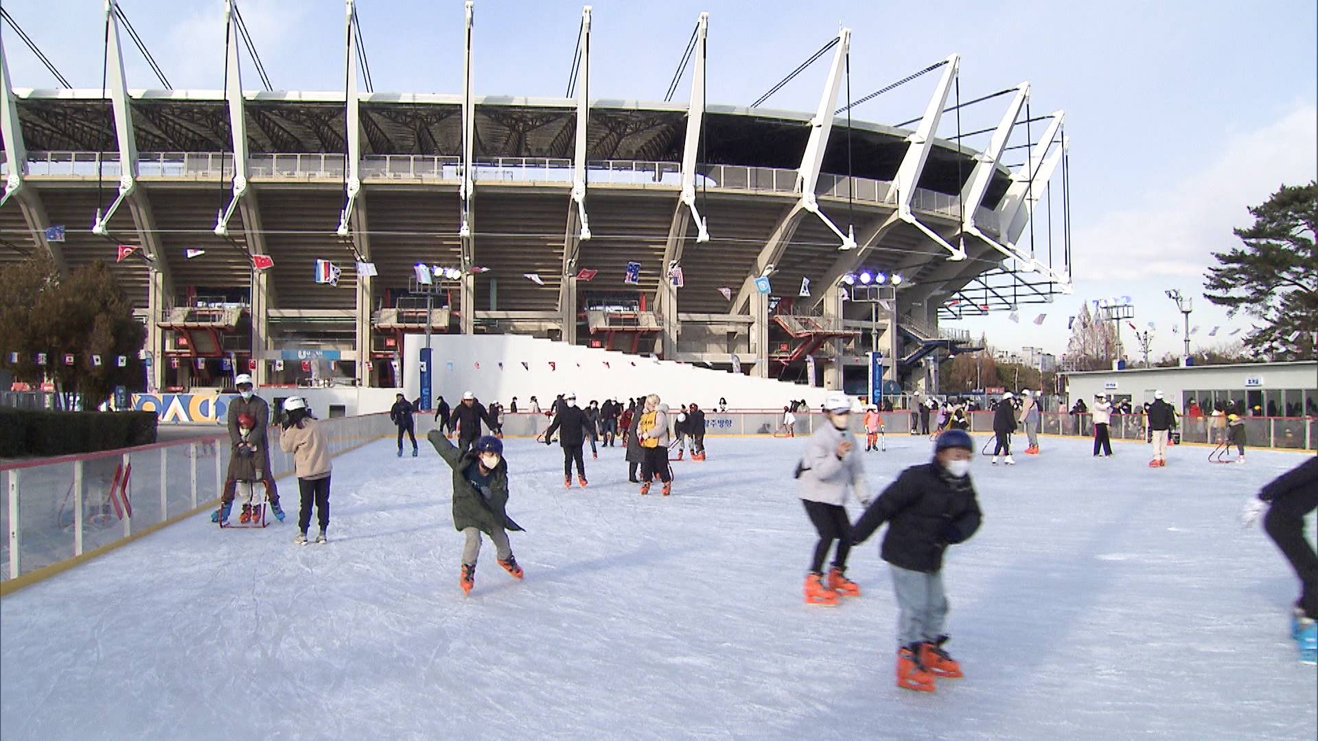 문수축구경기장 야외주차장에 겨울을 맞아 야외빙상장이 조성돼 오늘(12/17)부터 운영에 들어갔습니다. 울산시가 조성한 야외빙상장에는 스케이트장과 썰매장이 갖춰져 있으며 내년 2월 17일까지, 오전 10시부터 오후 7시 30분까지 운영됩니다. 이용요금은 장비 대여료를 포함해 2천 원이며 현장 발권은 물론 울산공공야외...