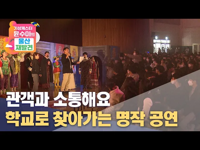 [앵커] 수능을 마친 고3 수험생들과 지역 청소년들을 위한 특별 공연이 학교를 찾아가고 있습니다. 청소년들이 연극을 쉽게 이해하고 친숙해질 수 있도록 색다른 방식으로 무대가 꾸며졌습니다. 울산재발견 윤수미리포터가 전해드립니다. [리포트] 셰익스피어의 명작인 햄릿 연극이 중학교 강당에서 펼쳐집니다. 배우들의 ...