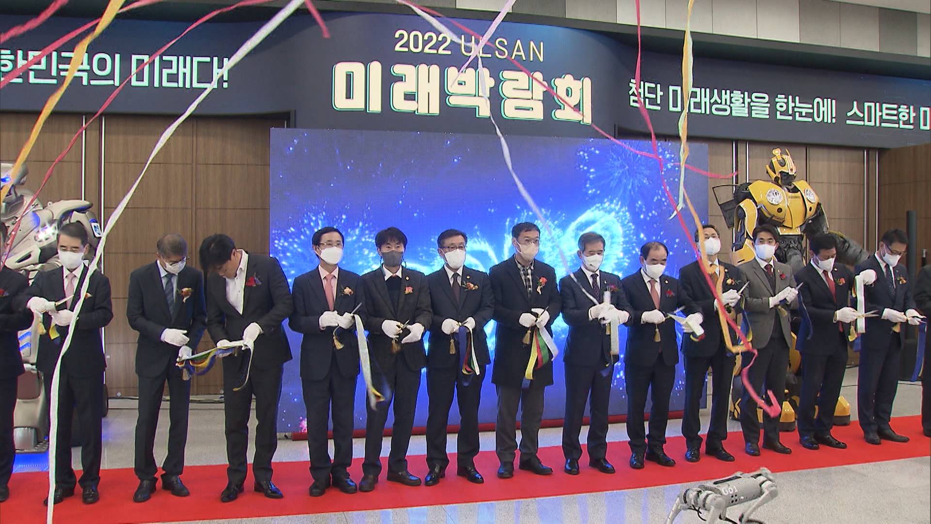'2022 울산미래박람회'가 오늘부터(11/25) 27일까지 사흘 동안 울산전시컨벤션센터에서 개최됩니다. 박람회는 하늘을 나는 자동차와 4족 보행 로봇 '스폿'과 '알파독', 각종 서빙과 방역·안내 로봇 등을 선보입니다. 박람회 기간 울산 인공지능 페스타와 울산 소프트웨어 기업의 구인난 해소와 구직자 취업 알선을 위한 채...
