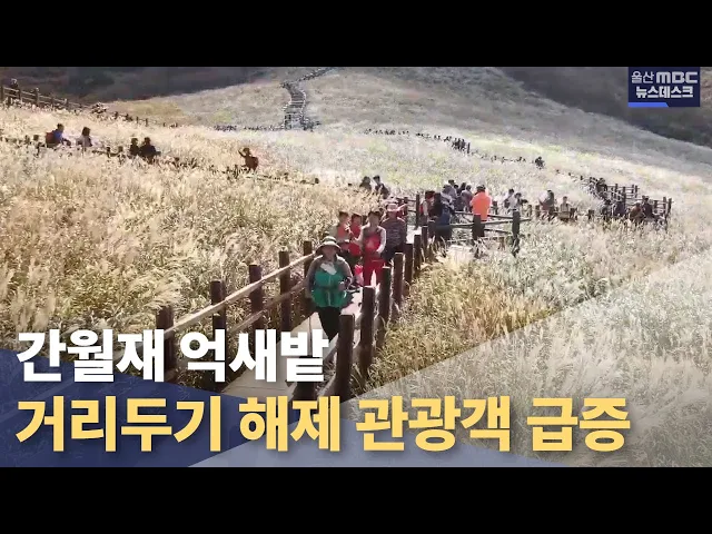 [앵커] 본격적인 가을에 접어들면서 영남알프스 간월재에는 억새꽃이 만개했습니다. 코로나19 유행이 잦아들고 거리두기 조치가 대폭 완화되면서, 울산은 물론 전국 각지에서 억새 평원을 둘러보려는 관광객들이 모여들고 있습니다. 유희정 기자입니다. [리포트]신불산과 간월산을 잇는 해발 900m 지점의 간월재. 16만 5천...