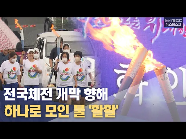 [앵커] 태화강 국가정원과 강화도 마니산 그리고 울산의 5개 구·군에서 채화된 성화가 한자리에 모였습니다. 전국체전의 성공 개최를 기원하는 성화는 사흘 동안 울산 곳곳에서 활활 타오르며 전국체전과 장애인체전 개회식에 맞춰 성화대로 돌아올 예정입니다. 이돈욱 기자입니다. [리포트] 7개의 성화대에서 빛나는 불길...